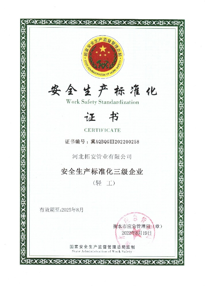 安全生产标准化证书