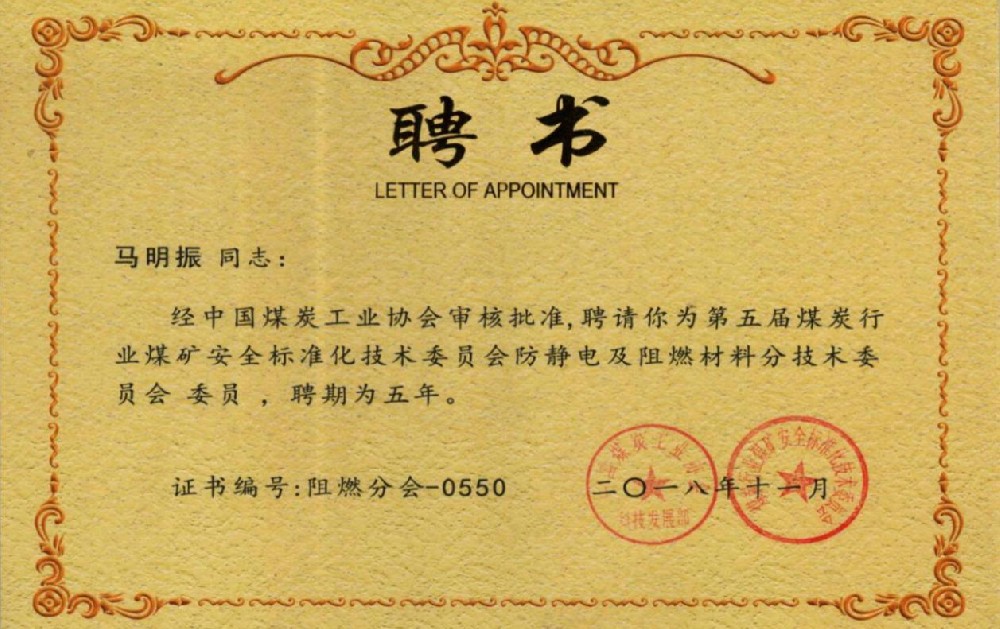 全国煤矿专用设备及配件产品定点生产单位证书